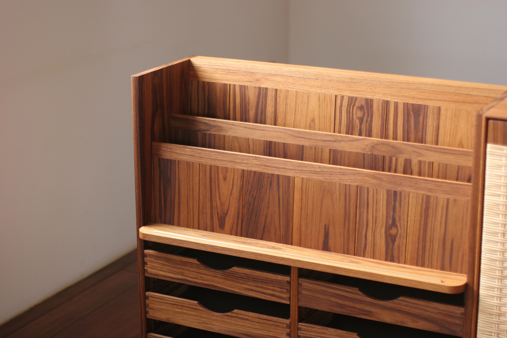 468 rattan chest + book shelf / teak oil finish / rattan / brass key / w2500+w828 d280 h750