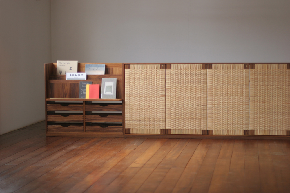 468 rattan chest + book shelf / teak oil finish / rattan / brass key / w2500+w828 d280 h750