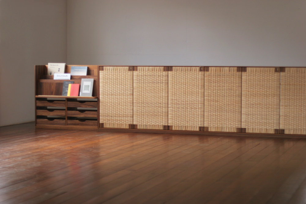 468 rattan chest + book shelf / teak oil finish / rattan / brass key / w2500+w828 d280 h750