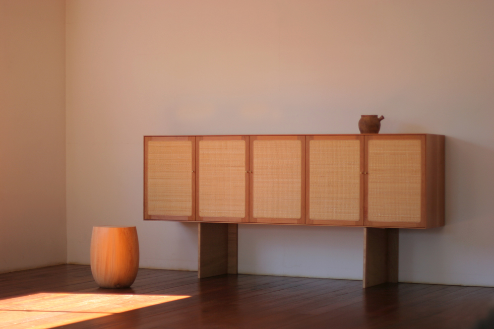 481 Shoe cabinet / black cherry oil finish / rattan W2000 H580 D400