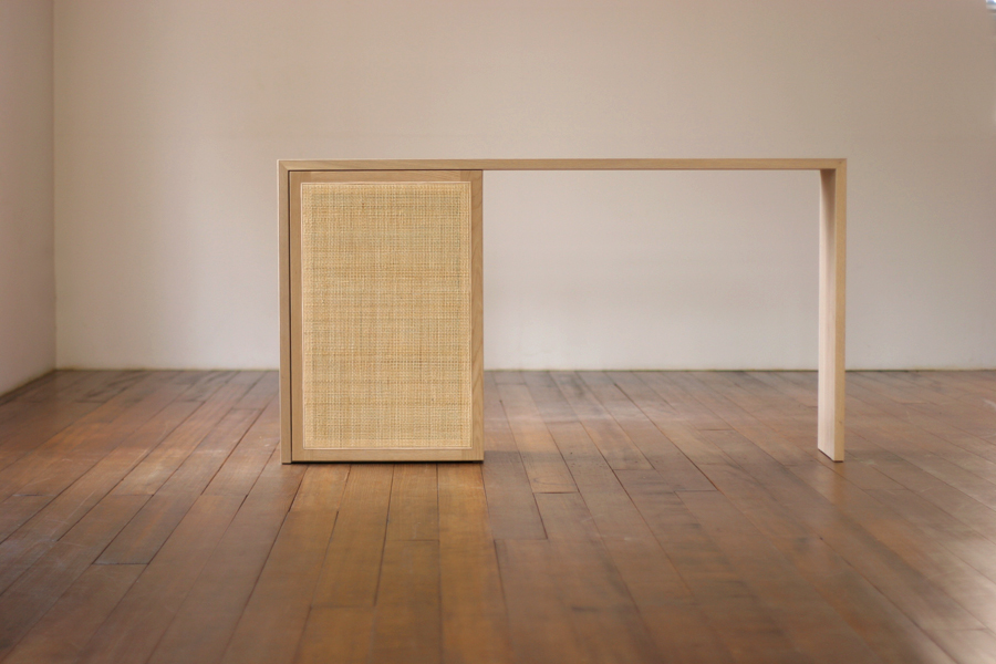 287 Bedroom shelf/ nara soapl finish +rattan / W1440 H770