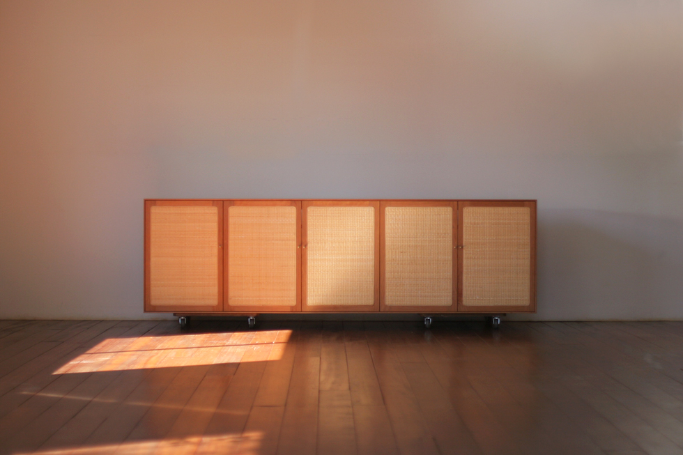 481 Shoe cabinet / black cherry oil finish / rattan W2000 H580 D400