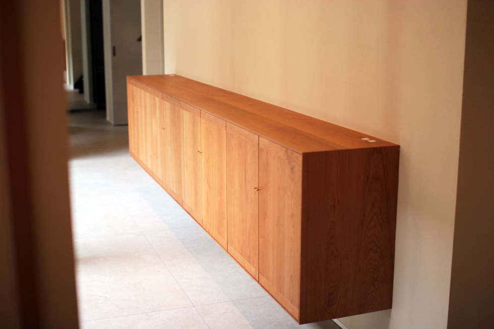 3200mmの長さのあるロングシェルフ。玄関を入り中庭に面した通りの壁面へ取り付け。 L i s t