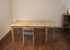 | 来月はレギュラーダイニングテーブルの予約が多い。 たまたま、重なって先月から、10台以上作っている。実際良く出来たダイニングテーブルだと、我ながら思っている。 やるべき仕事はきちんと発揮できるミニマムワーク&(バット)ハイクオリティーである。 お客さんの満足度も高く、こういったテーブルを提供できる事に感謝している。 余計な部分に手間をいっさいかけず、木柄選びや、クオリティーを高める事に徹したテーブルである。 だから当然のように、木は美しく、テーブルは場に馴染む訳だ。 このテーブルに関して不満はないし、もちろん作り続けていく。 それでも、このテーブルとは違った、新しいテーブルも作っていこうと思う。 感動レベルの物に少しでも近付きたい。 椅子にしてもそうである。チェストやカップボードにしてもそうである。 僕の妄想や理想や現実の中で、じわじわと出てきている「あいつら」をつかまえたい。 ムリクリしても壊れそうな程繊細なくせに、何度も何度もわいてくる「あいつら」、、、。 手強い。 |