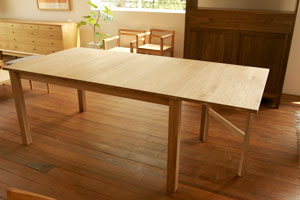| 来月はレギュラーダイニングテーブルの予約が多い。 たまたま、重なって先月から、10台以上作っている。実際良く出来たダイニングテーブルだと、我ながら思っている。 やるべき仕事はきちんと発揮できるミニマムワーク&(バット)ハイクオリティーである。 お客さんの満足度も高く、こういったテーブルを提供できる事に感謝している。 余計な部分に手間をいっさいかけず、木柄選びや、クオリティーを高める事に徹したテーブルである。 だから当然のように、木は美しく、テーブルは場に馴染む訳だ。 このテーブルに関して不満はないし、もちろん作り続けていく。 それでも、このテーブルとは違った、新しいテーブルも作っていこうと思う。 感動レベルの物に少しでも近付きたい。 椅子にしてもそうである。チェストやカップボードにしてもそうである。 僕の妄想や理想や現実の中で、じわじわと出てきている「あいつら」をつかまえたい。 ムリクリしても壊れそうな程繊細なくせに、何度も何度もわいてくる「あいつら」、、、。 手強い。 |